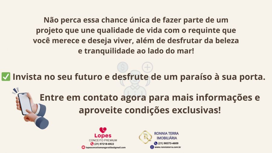 Não perca a oportunidade de investir em qualidade de vida e construir o futuro da sua família em um dos destinos mais desejados do Rio de Janeiro.