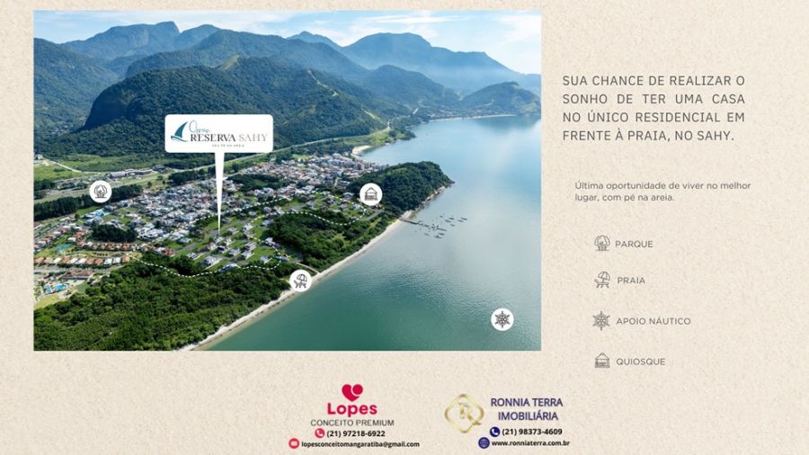 O Empreendimento Gran Reserva SAHY é sinônimo de bem-estar e segurança, proporcionando uma infraestrutura completa para você e sua família desfrutarem de momentos inesquecíveis. Além disso, sua localização estratégica no 4º Distrito de Mangaratiba, às margens da Rodovia Rio Santos(BR101) oferece fácil acesso a uma variedade de conveniências e serviços.