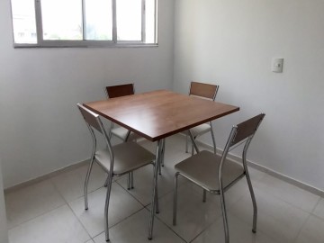 O Apartamento possui : cooktop, geladeira, armários planejados na cozinha,área de serviço e nos quartos, 01 cama de solteiro, 01 rack, 01 jogo de mesa com 4 cadeiras.